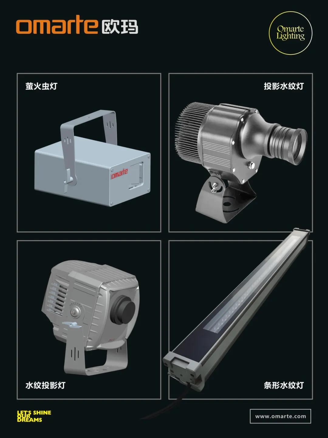 金寶樂園夜游項目使用了歐瑪文旅防水系列水紋燈、投影燈、螢火蟲燈等2000多臺。