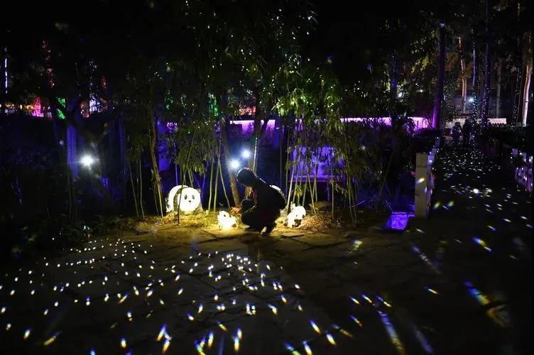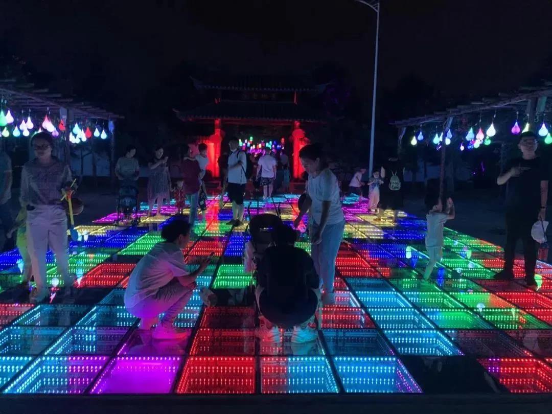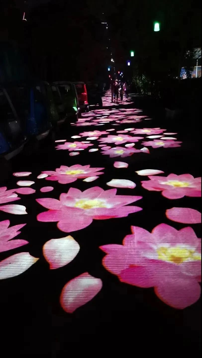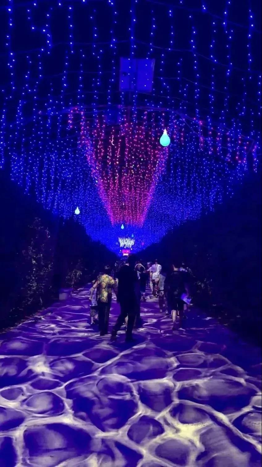 金寶星夜的螢火蟲景觀,你可伸手觸摸藏身花草樹木中的螢火蟲,亦可追逐飛舞的螢火蟲,來一個零距離親密接觸,感受螢火流光飛揚的奇幻和浪漫。閃閃發光的螢火蟲,與星光熠熠的夜空,交相輝映,猶如滿天星河在你身邊流淌,如夢如幻;大型地面互動,你可以踏花而行,看五彩斑斕的鮮花在夜晚里燦爛綻放,每棵樹上的光遇到觀賞者接近通過時,光芒的顏色會產生變化并且發出特別的音色;進入時空隧道仿佛走進了一個夢幻的王國,而我們就是這個童話世界里的人,精神一下子開始變得愉悅起來。