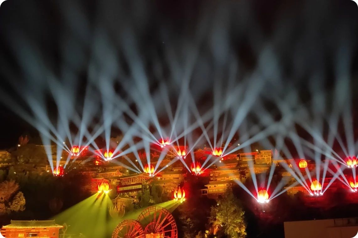 這場集結(jié)了大自然慷慨贈予和人類神工巧匠智慧的盛宴,讓夜晚之中的苗寨風光有了令人期盼神往動人輪廓。在燈光亮起的剎那,那些白晝時所看到的美好,再次與我們見面,甚至還多了些別樣的韻味。一場山水實景演出,呈現(xiàn)不一樣的夜晚,講述不一樣的故事,光在打亮每一片你不曾見過的實景容貌。