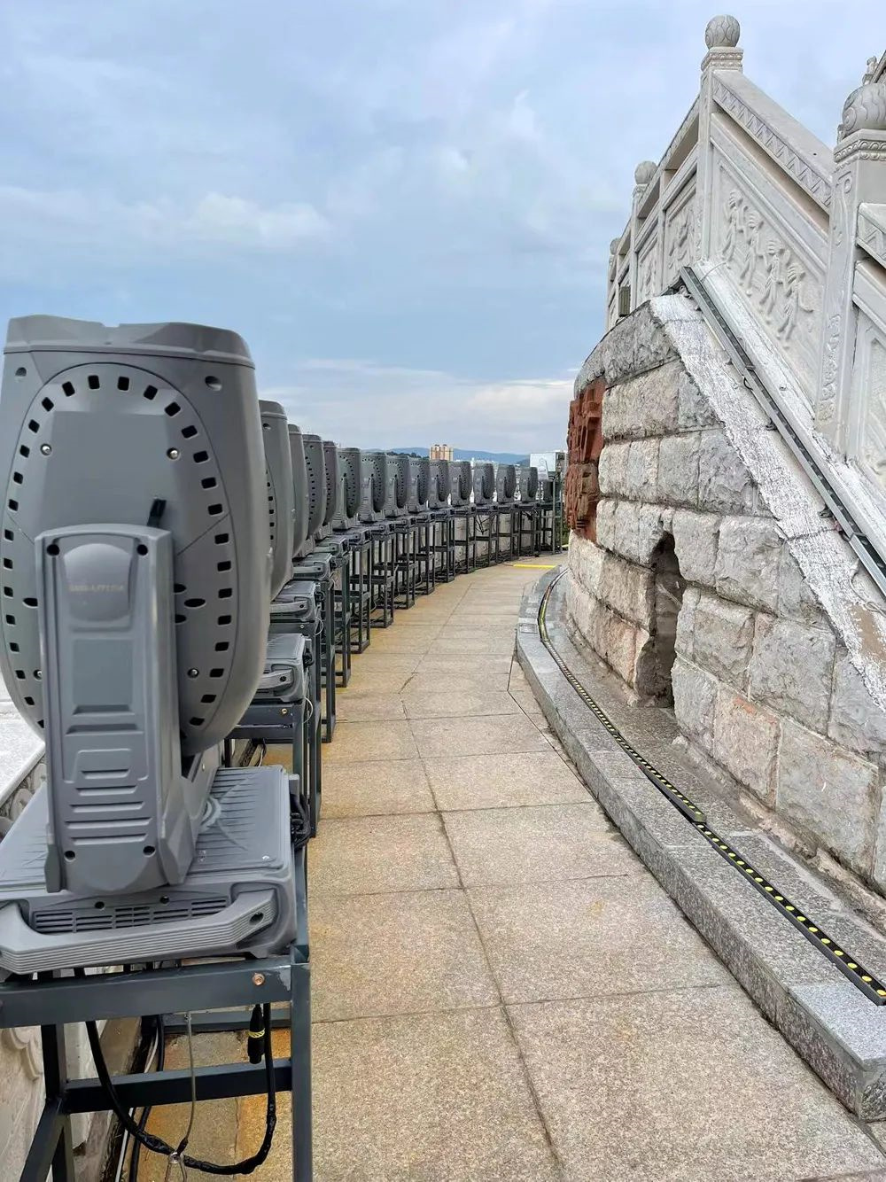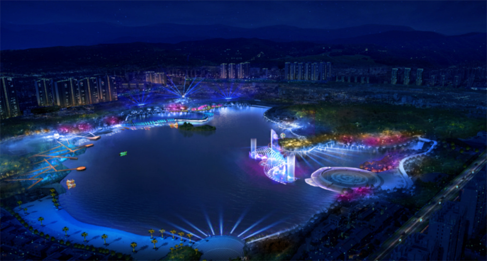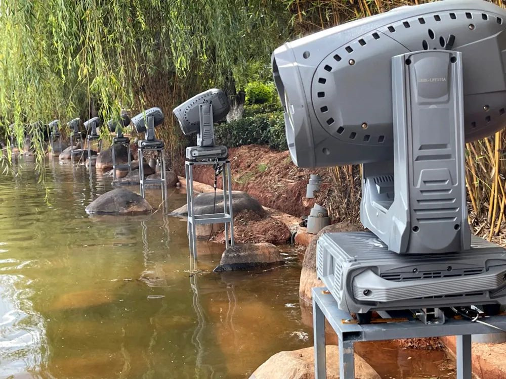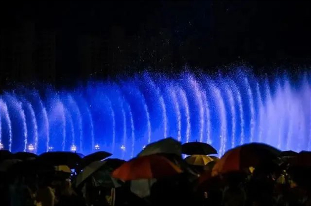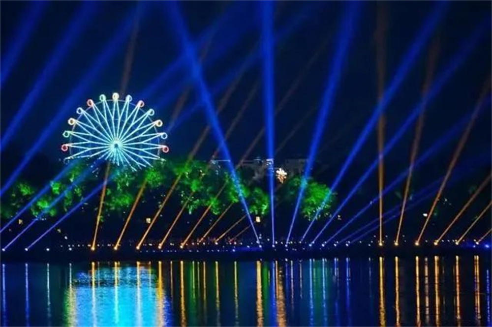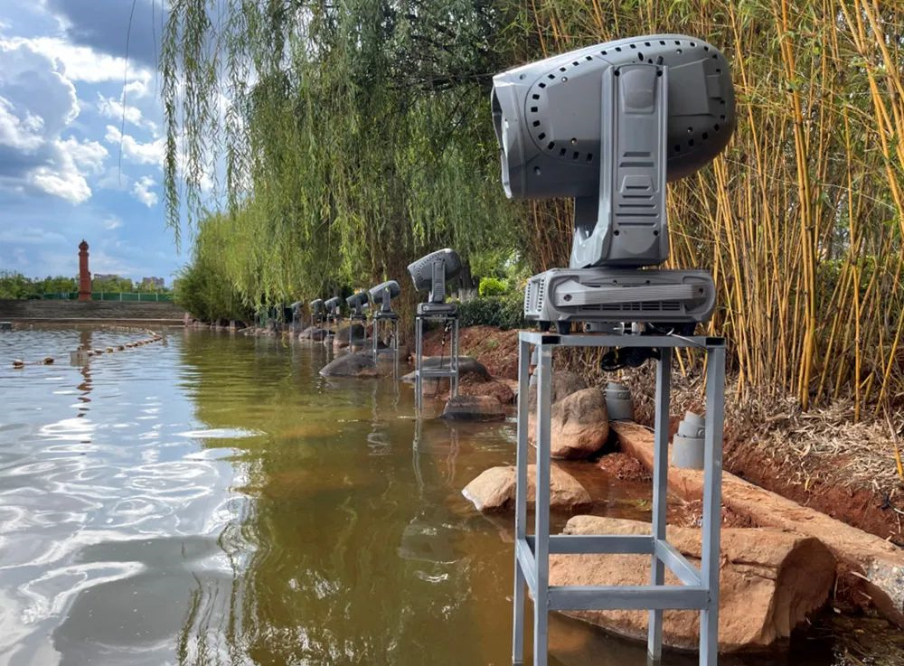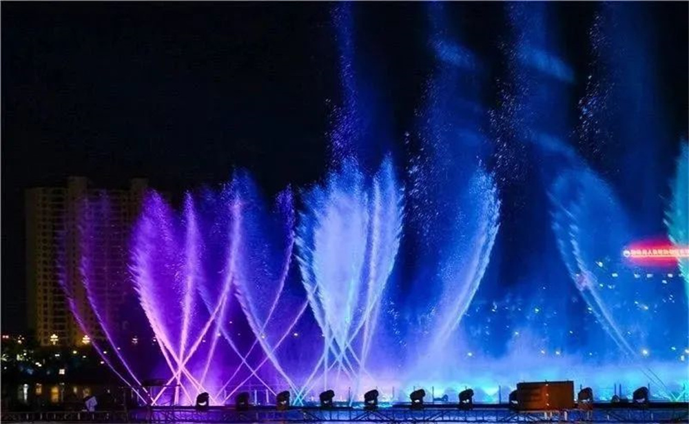 技術(shù)賦能,創(chuàng)意呈現(xiàn),防水光束燈視覺沖擊力十足,豐富的色彩,精準銳利的光束。隨著音樂聲起,無數(shù)的水柱“跳”起了歡快的舞蹈,在絢麗的燈光照耀下,彝海公園的夜空被點靚了。