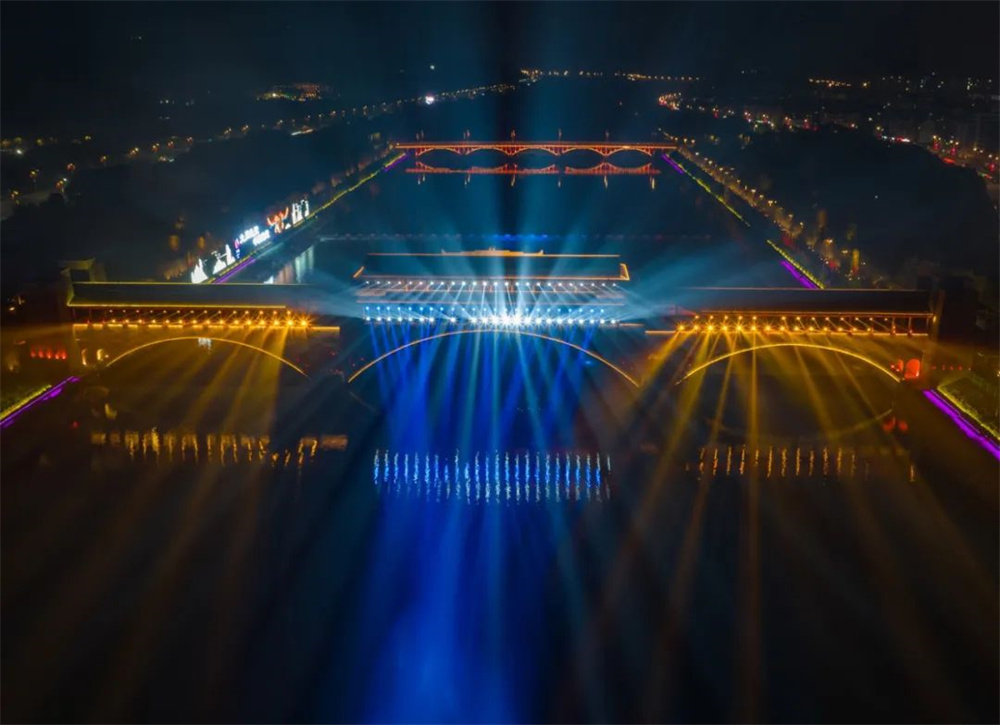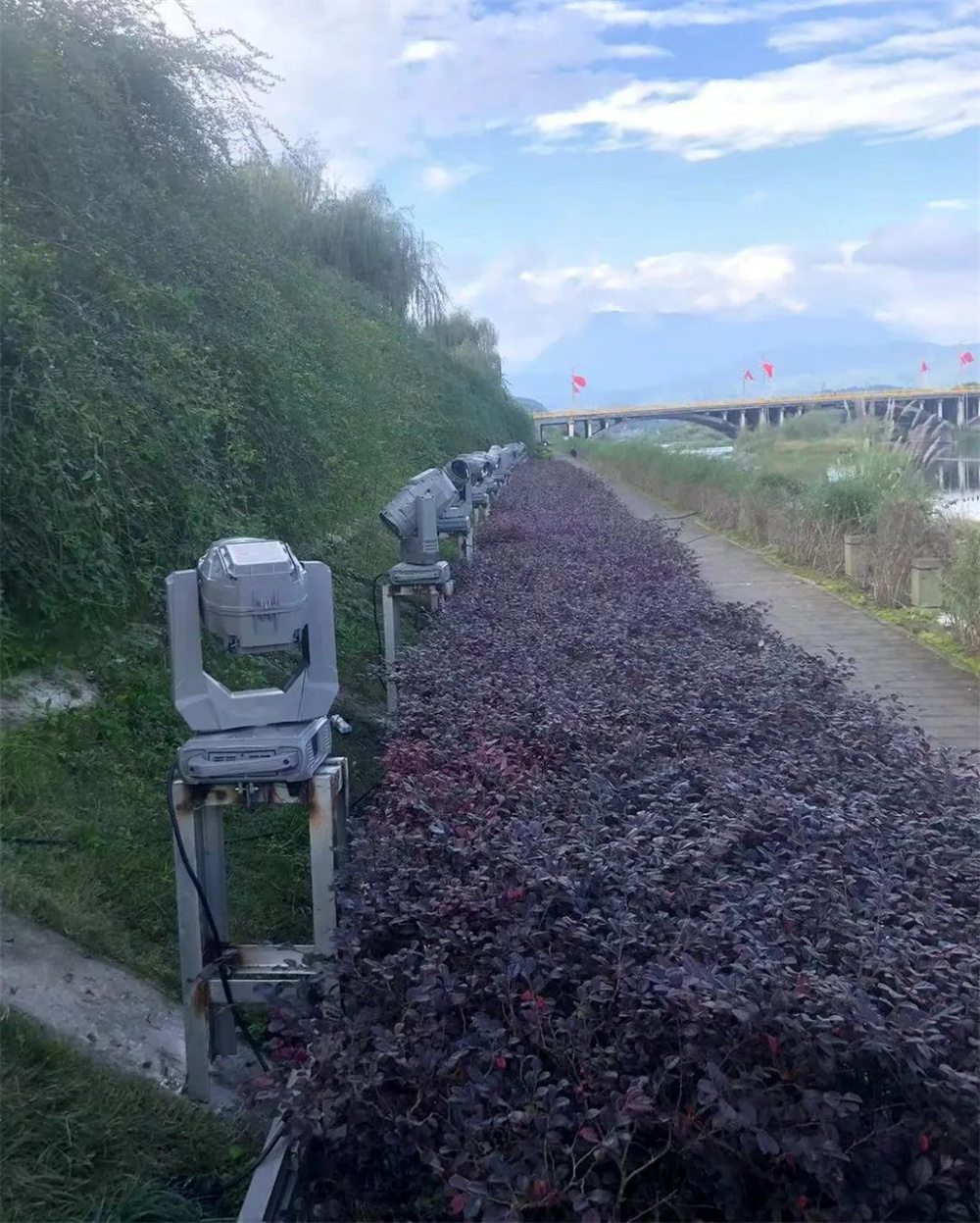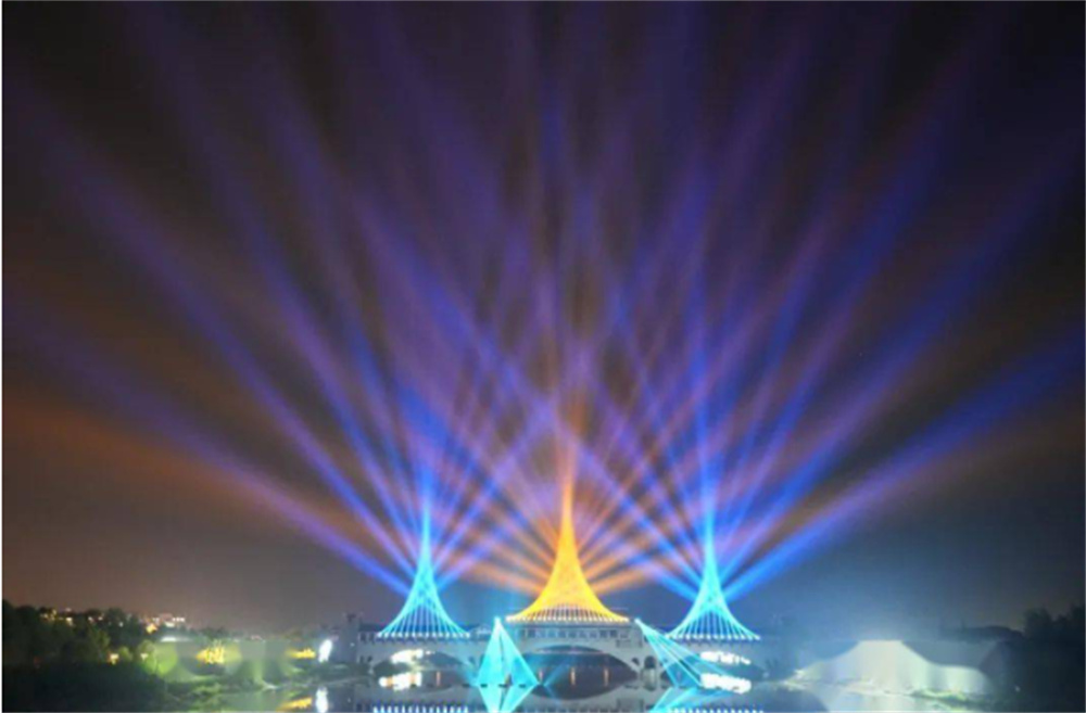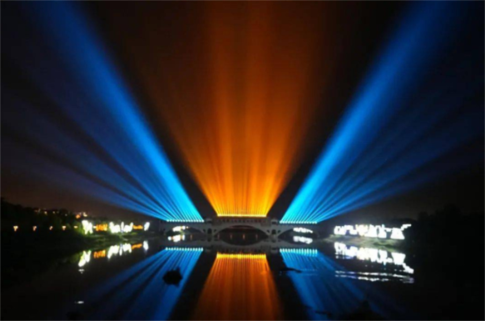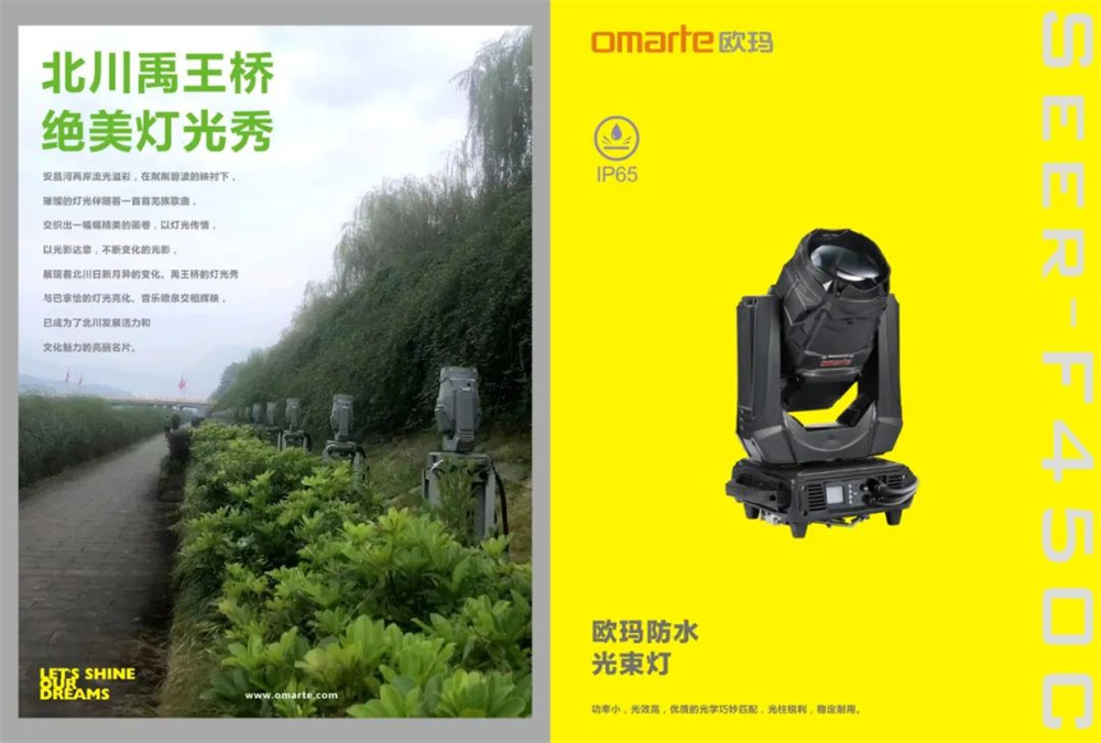 綿陽北川禹王橋燈光秀使用歐瑪防水光束燈近500臺。不管風吹雨打,我依然璀璨多姿,歐瑪防水光束燈擁有360°全防護特性,輕松防水防潮。燈光變化與音樂和表演緊密配合,通過強勁的光束、豐富的色彩,將羌族風情、大禹文化和現(xiàn)代氣息展現(xiàn)在觀眾面前,讓每一位觀眾都沉浸在光與影、美如畫卷中,流連忘返。