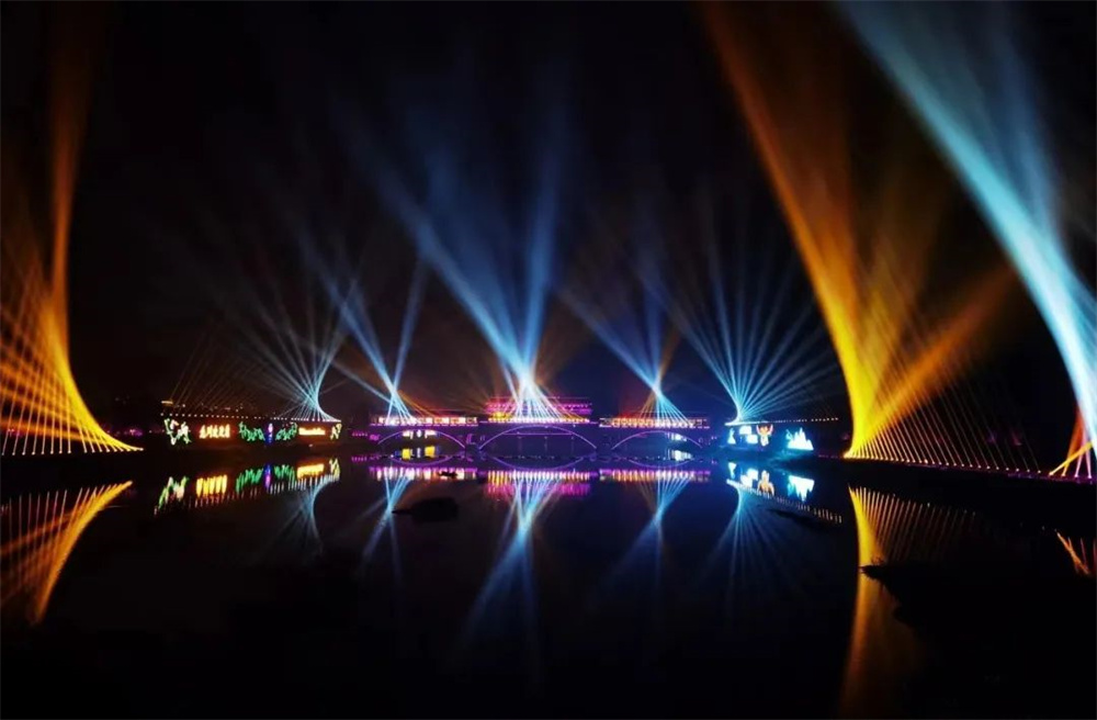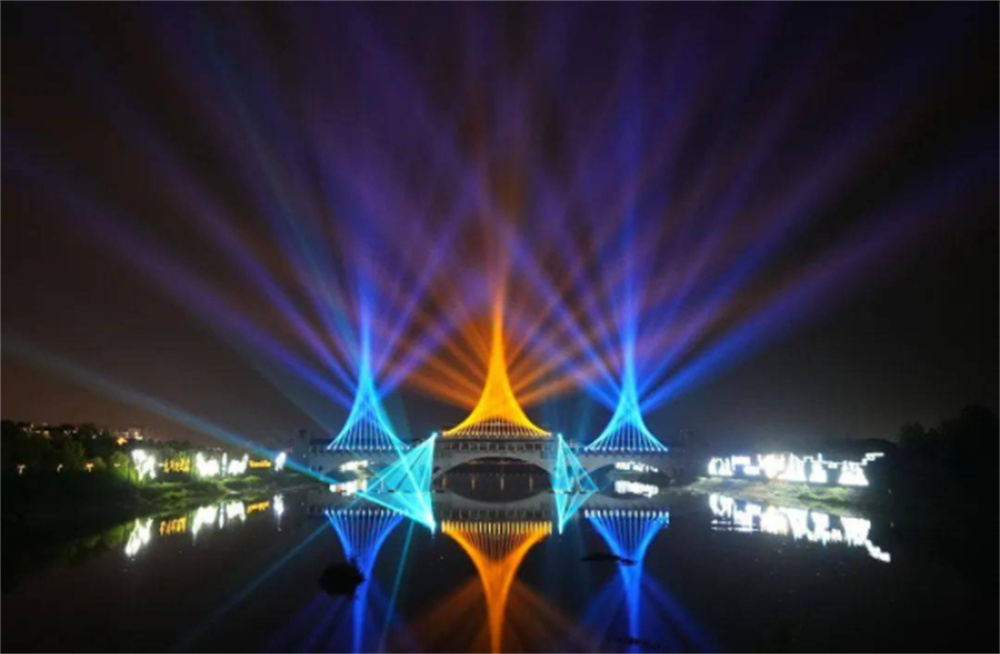 安昌河兩岸流光溢彩,在粼粼碧波的映襯下,璀璨的燈光伴隨著一首首羌族歌曲,交織出一幅幅精美的畫卷,以燈光傳情,以光影達意,不斷變化的光影,展現(xiàn)著北川日新月異的變化。禹王橋的燈光秀與巴拿恰的燈光亮化、音樂噴泉交相輝映,已成為了北川發(fā)展活力和文化魅力的亮麗名片。