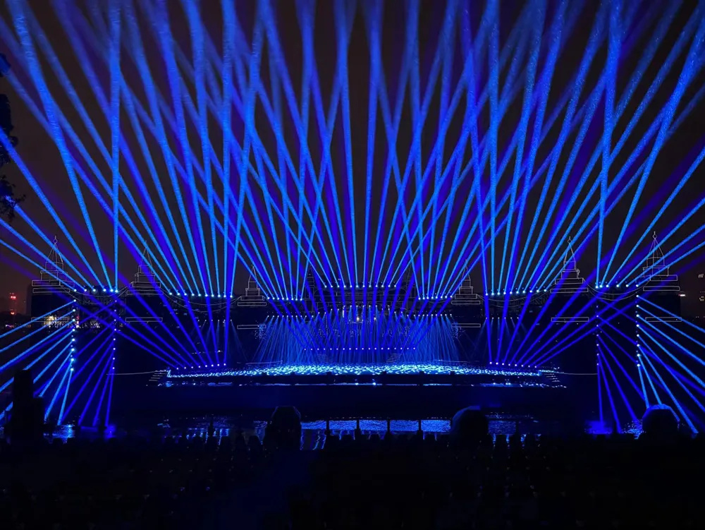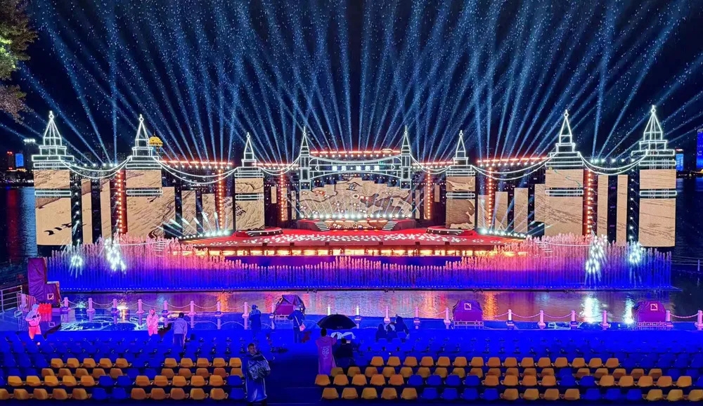 銳利多姿的燈光成為秀場的核心燃點,創意與科技結合、文化與激情碰撞,以情景劇、歌舞、雜技、水上表演等表現形式,結合水幕電影、火秀特效、音樂數控噴泉、激光表演、無人機表演等科技手段,將“人、聲、光、水、電、影、景”完美融合,演繹了一幅幅動人的炫彩畫卷。