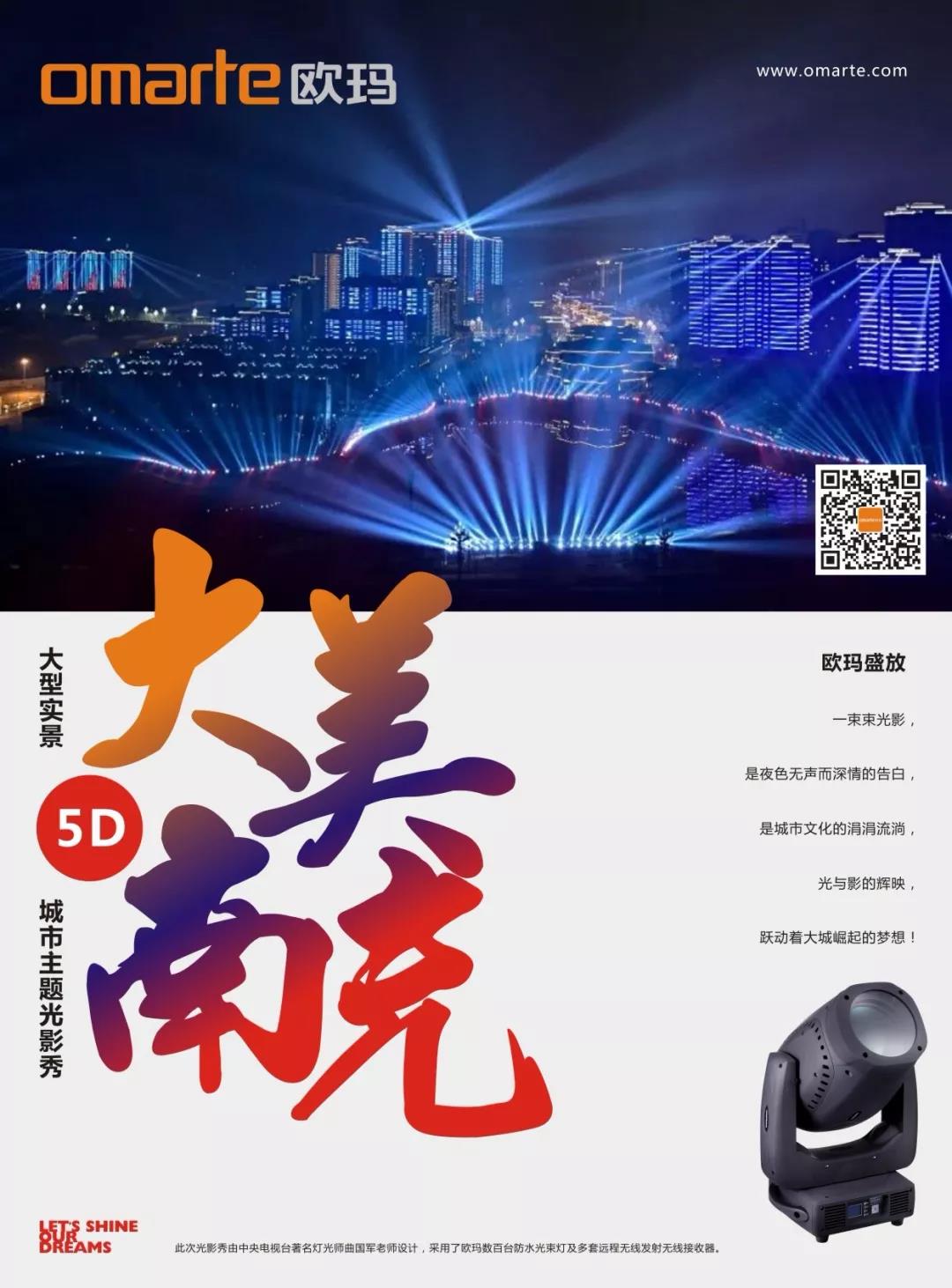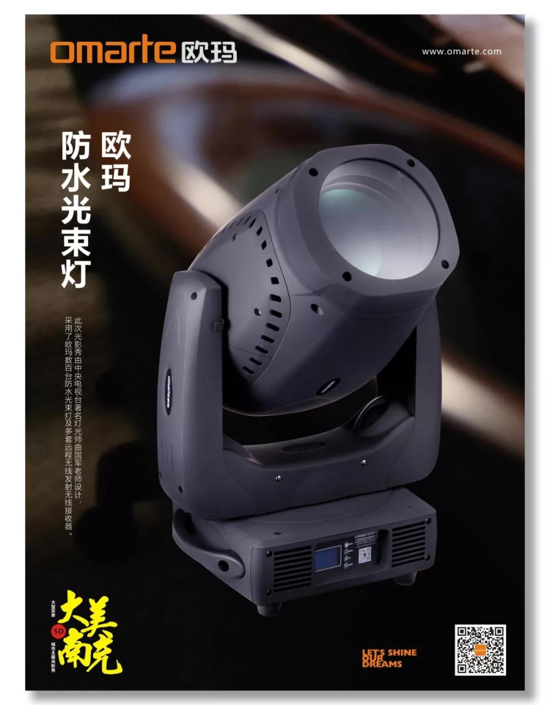 此次光影秀由中央電視臺著名燈光師曲國軍老師設計,采用了歐瑪數百臺防水光束燈及多套遠程無線發射無線接收器。歐瑪防水光束燈防護等級可達IP54;由鑄鋁和耐高溫防紫外線工程塑料構成的外殼;0-100%機械線性調光,調光效果極其平滑;光束銳利并可混搭出花樣百出和充滿動感的效果。