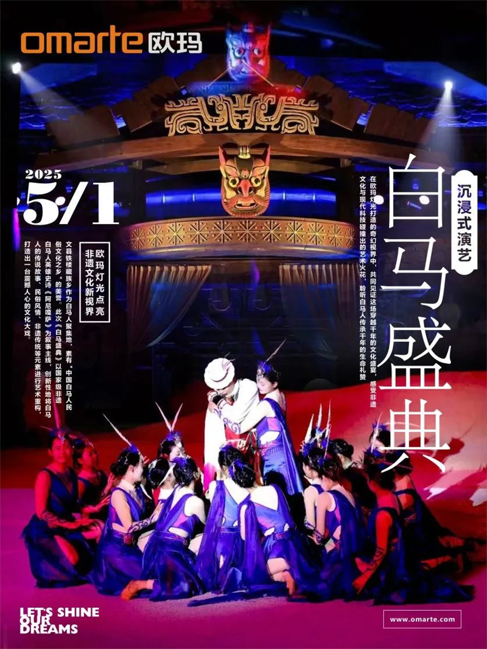 5月1日,讓我們相約文縣,在歐瑪燈光打造的奇幻視界中,共同見證這場穿越千年的文化盛宴,感受非遺文化與現(xiàn)代科技碰撞出的藝術(shù)火花,聆聽白馬人傳承千年的生命禮贊!
