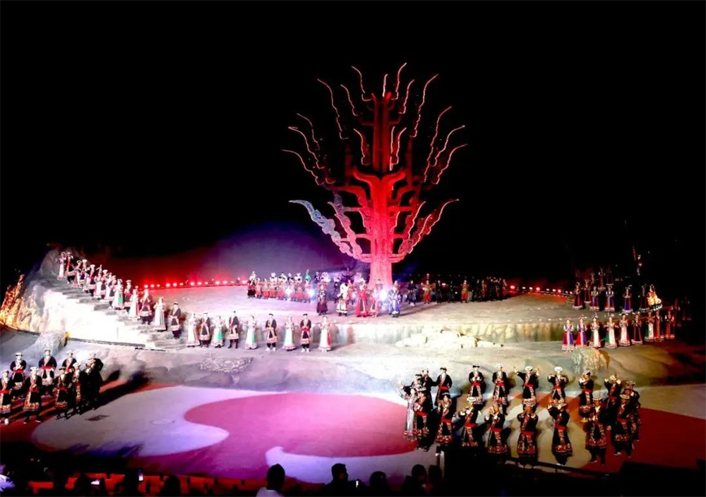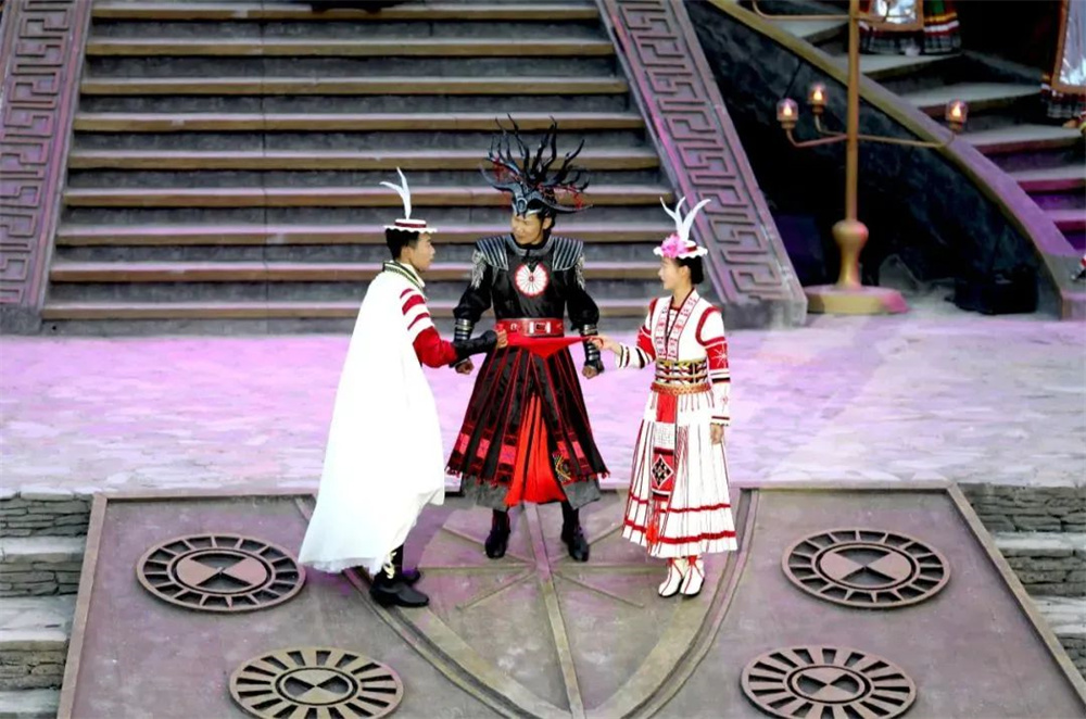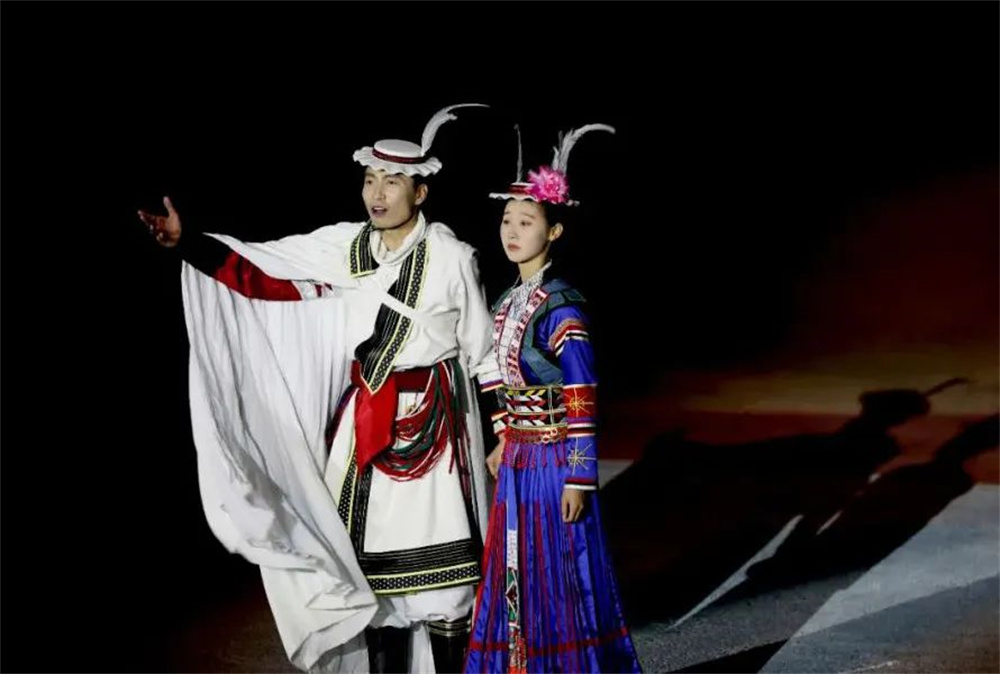 文縣鐵樓藏族鄉(xiāng)作為白馬人聚集地,素有"中國白馬人民俗文化之鄉(xiāng)"的美譽。此次《白馬盛典》以國家級非遺白馬人英雄史詩《阿尼嘎薩》為敘事主線,創(chuàng)新性地將白馬人的傳說故事、民俗風情、非遺傳統(tǒng)等元素進行藝術(shù)重構(gòu),打造出一臺震撼人心的文化大戲。