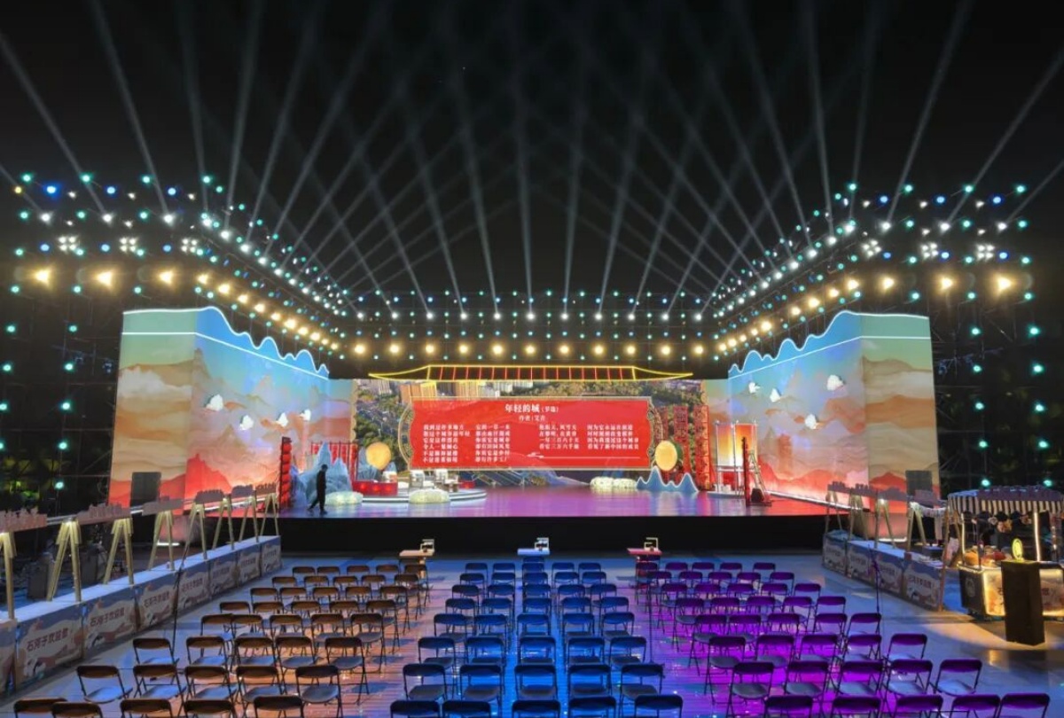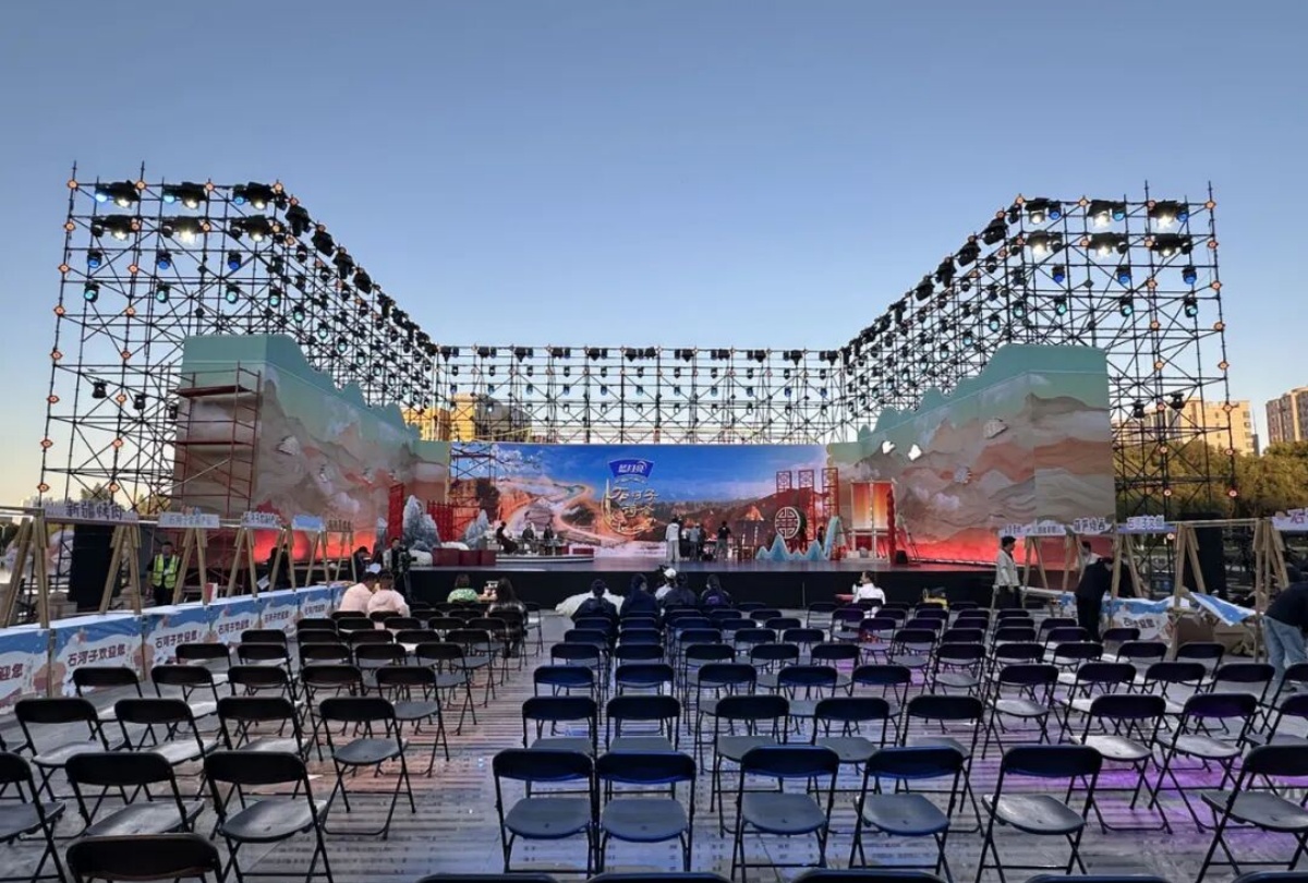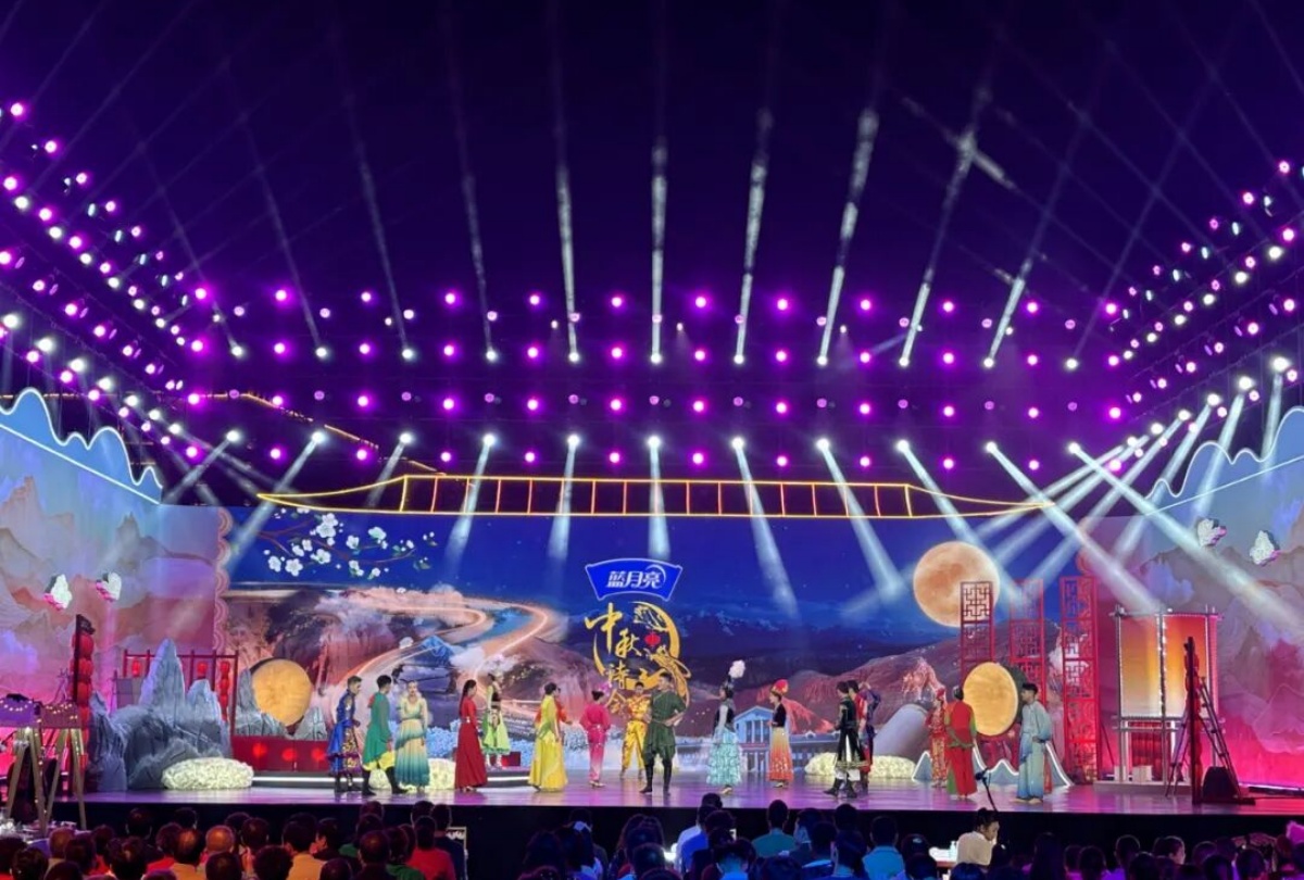 而這場文化盛宴的舞臺光彩,全由新疆大唐盛業聯合歐瑪燈光打造——近500臺歐瑪旗艦設備強勢助陣,其中防水光束燈以精準銳利的光效劃破邊疆夜色,切割燈靈活勾勒出詩與舞臺的立體輪廓,LED染色燈則將“戈壁明珠”的璀璨與軍墾情懷的厚重鋪滿全場,讓千年詩韻與兵團精神在光影流轉中實現深度交融。
