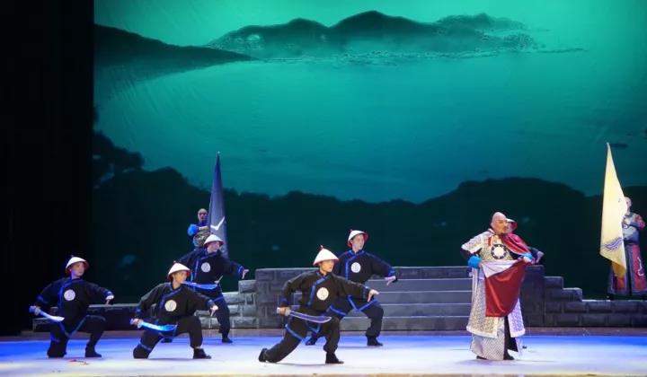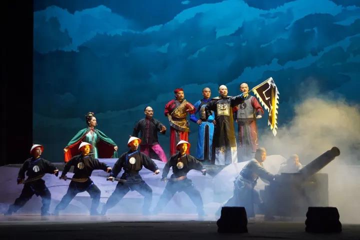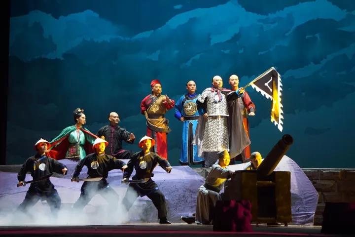 整場(chǎng)戲劇分為華堂之喜、臨危赴臺(tái)、直奔臺(tái)南、拒任總統(tǒng)、兩岸相思、誓死保臺(tái)、壯志未酬、欽州之光共八個(gè)場(chǎng)次,層層激進(jìn)重現(xiàn)民族英雄抗擊倭寇的艱辛之路,濃墨重彩勾勒出劉永福英勇果敢、浴血奮戰(zhàn)的英雄形象,詮釋劉永福率領(lǐng)黑旗軍和臺(tái)灣民眾抗日保臺(tái)的愛(ài)國(guó)情、戰(zhàn)友情、兩岸同胞情。