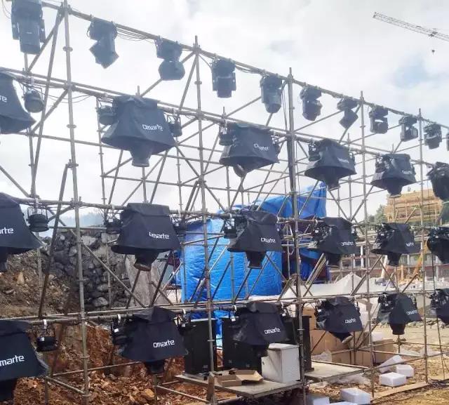 在本次《獨山盛典》表演中,采用了歐瑪燈光600wLED切割燈(Ares-P6)、1500w光束燈(OA-3500BEAM)、防水燈(FS300)、1500w大追光燈(GATLING1500)共600多臺。