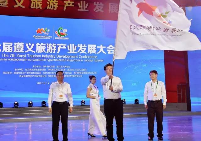 開幕式上,著名表演藝術家唐國強受聘“遵義旅游形象大使”并接受了聘書。組委會向第八屆遵義旅游產業發展大會承辦地道真自治縣授旗,隨后進行了精彩的文藝演出。