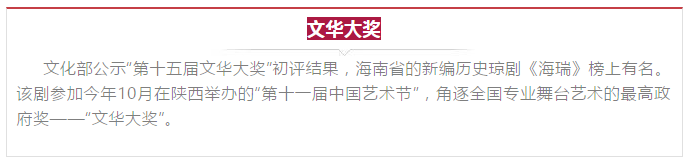 歐瑪助陣大型歷史瓊劇《海瑞》沖刺藝術(shù)節(jié)“文華大獎”