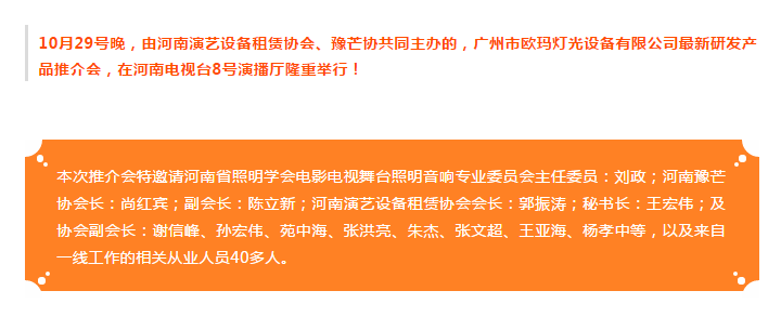 本次推介會(huì)主推產(chǎn)品:600wLED切割燈(Ares-P6),7顆60wLED蜂眼燈(Eos-B7),4顆60wLED蜂眼燈(Eos-B4),320wLED光束燈。通過(guò)現(xiàn)場(chǎng)體驗(yàn),歐瑪燈光產(chǎn)品的優(yōu)秀品質(zhì)、卓越性能獲得到場(chǎng)的領(lǐng)導(dǎo)、老師一致認(rèn)可。