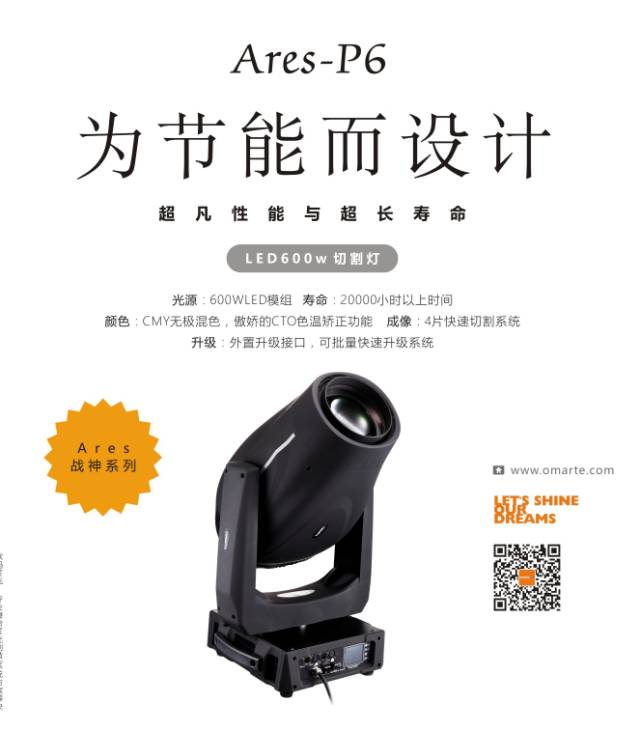 Omarte歐瑪是一個(gè)用科技打造現(xiàn)代炫彩光影世界、用實(shí)力贏得贊譽(yù)的專業(yè)燈光品牌,一直秉承著“用科技創(chuàng)造光影新世界,用創(chuàng)新引領(lǐng)行業(yè)潮流”的企業(yè)理念,在對(duì)電腦燈、追光燈、LED燈、戶外景觀照明等專業(yè)燈光設(shè)備進(jìn)行全面科技更新和完善,同時(shí)幫助客戶完美制造科技炫彩光影世界,更為客戶提供全面細(xì)致的高品質(zhì)服務(wù)。