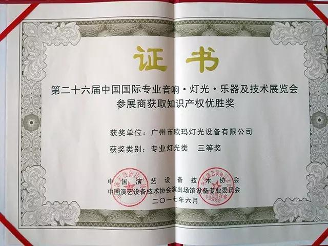 歐瑪燈光一直以來都對產(chǎn)品研發(fā),持續(xù)創(chuàng)新,維護(hù)知識產(chǎn)權(quán)等方面非常重視,從初創(chuàng)至今始終堅(jiān)持走自主研發(fā)的道路,本次獲獎(jiǎng)既是對歐瑪技術(shù)創(chuàng)新的肯定也是對歐瑪?shù)墓膭?lì)。