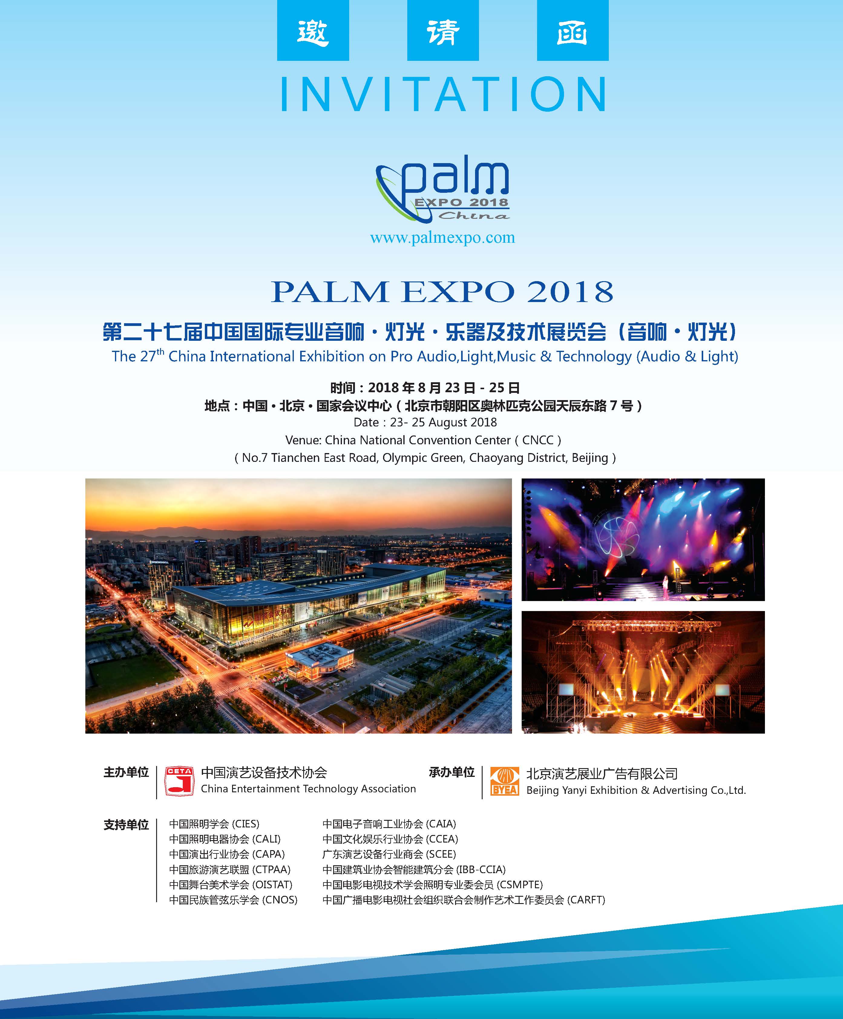 ? ? ? ?PALM EXPO展覽會(huì)是我國(guó)演藝設(shè)備行業(yè)的年度盛事,由中國(guó)演藝設(shè)備技術(shù)協(xié)會(huì)主辦。經(jīng)過(guò)二十八載精心培育與反復(fù)鍛造,展覽會(huì)“高端、精品、專(zhuān)業(yè)”的內(nèi)涵深入人心,已然成為演藝設(shè)備行業(yè)獨(dú)樹(shù)一幟的專(zhuān)業(yè)權(quán)威性展會(huì)。 ?