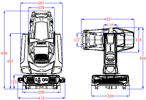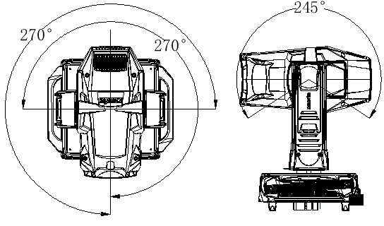 ·?為了維護和運輸,燈體帶有PAN 和TILT 軸向鎖